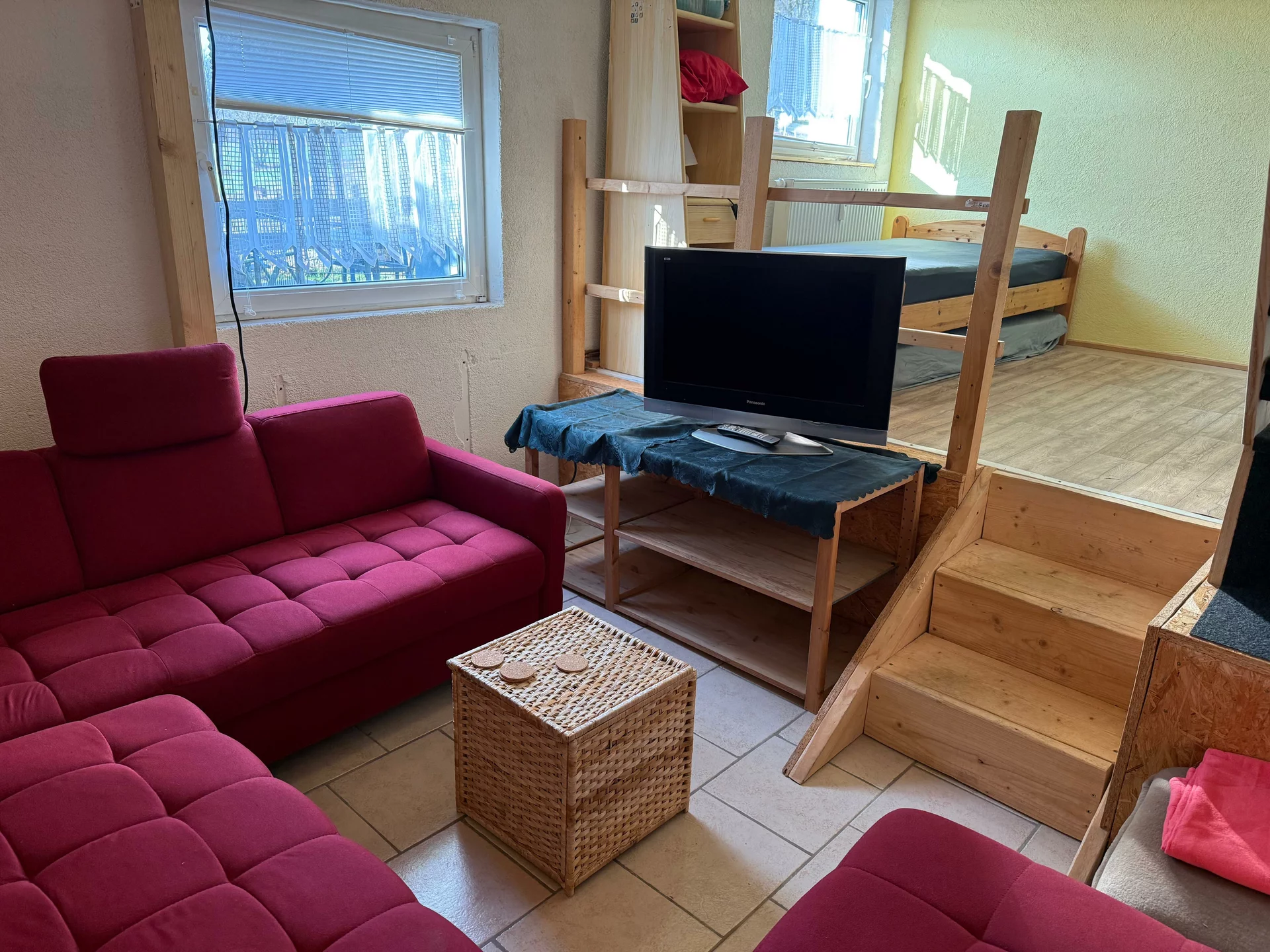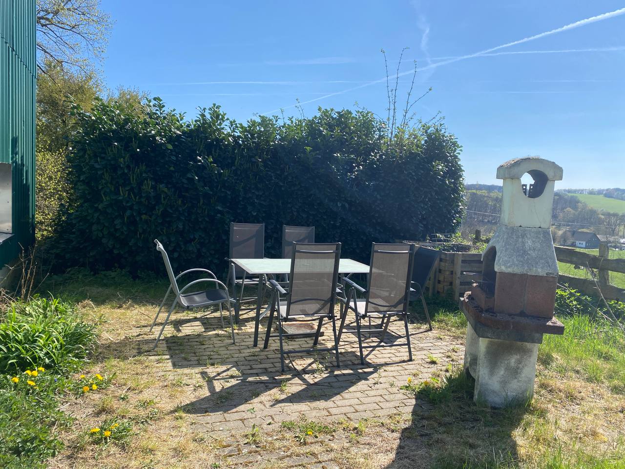 Sie haben einen eigenen Zugang, wenn Sie links am Pferdeanhänger entlang gehen: auf der linken Seite über die Terrasse. Sie dürfen gerne kostenlos auf unserer Terrasse sitzen. Falls Sie jedoch den Grill benutzen bzw. eine von Unkraut befreite Terrasse wünschen, veranschlagen wir einen Aufpreis von 10 Euro pro Tag wegen des zusätzlichen Aufwandes.